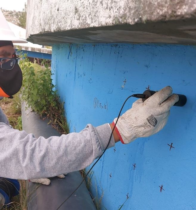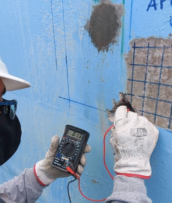 El proceso de corrosión del acero del concreto puede ser monitoreado con la medición del potencial eléctrico mediante el procedimiento conforme a ASTM C876 Método de Prueba Estándar para Medición del Potencial de Celda Media del Acero de Refuerzo en el Concreto.